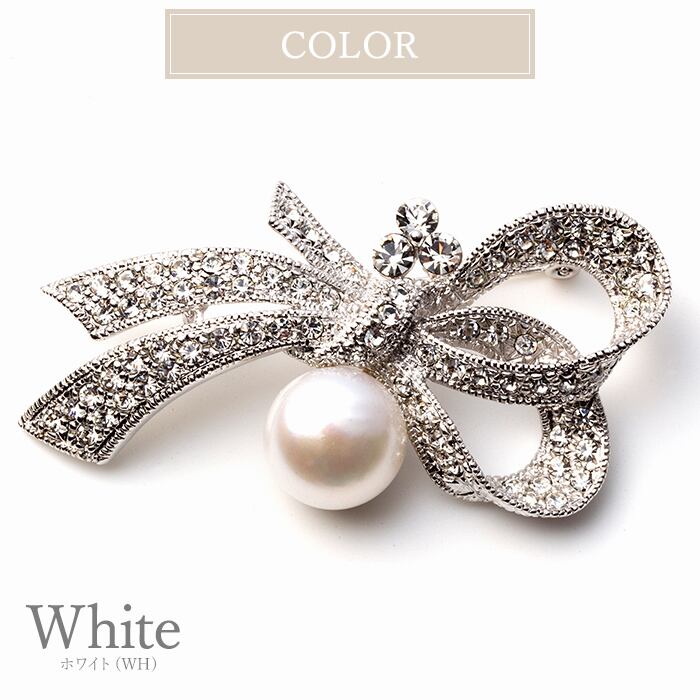 ブローチ 淡水パール ガラス ラウンドカット リボン