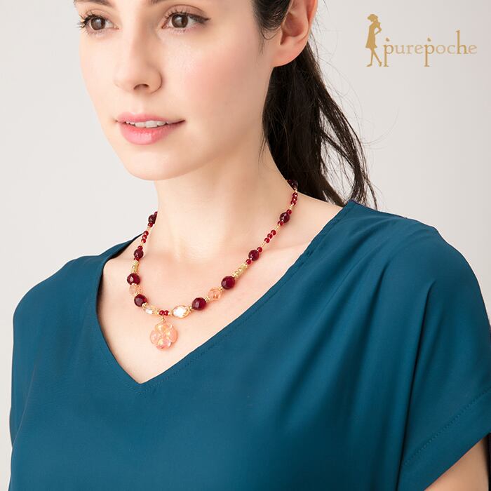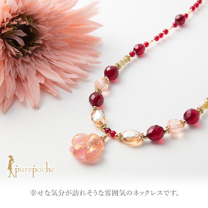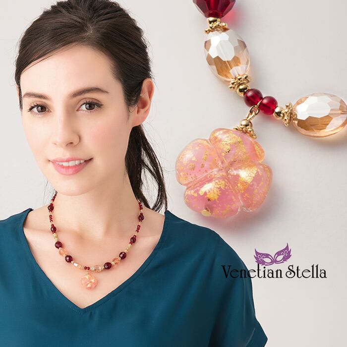 ネックレス ショート ヴェネチアン ベネチアン グラス ガラス 金箔 ローズ レッド クローバー 四葉