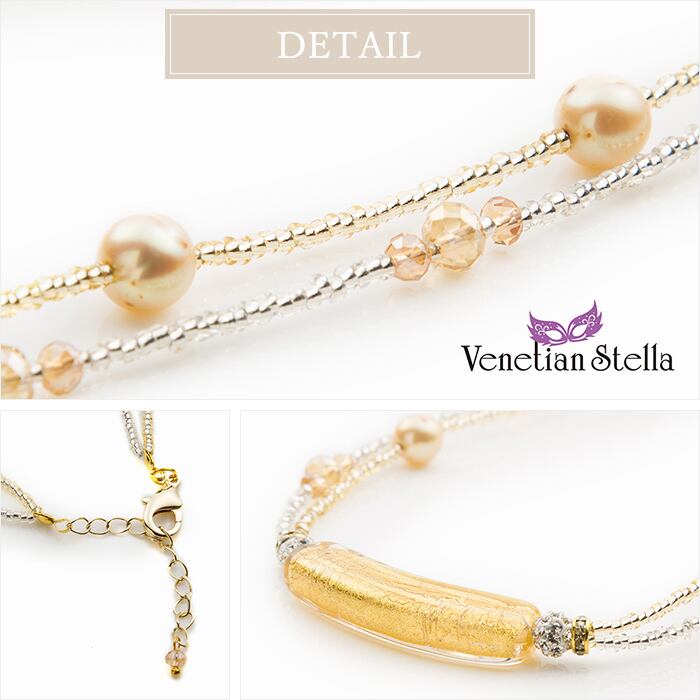 ネックレス ショート 淡水パール ヴェネチアン ベネチアン グラス ガラス マカロニ