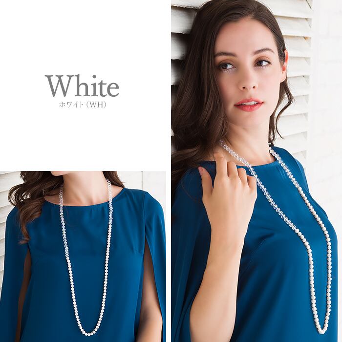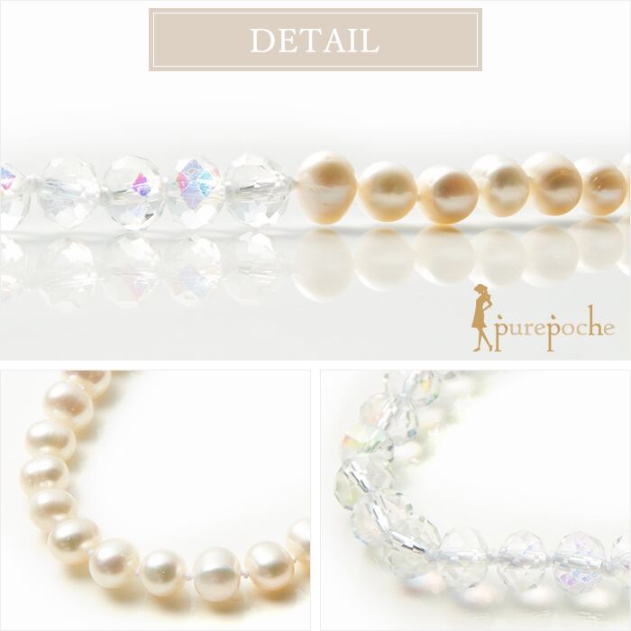 ガラスと淡水パールのバイカラーネックレスです。使いやすい長さと涼しげなデザインが人気です。