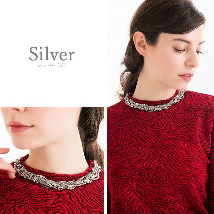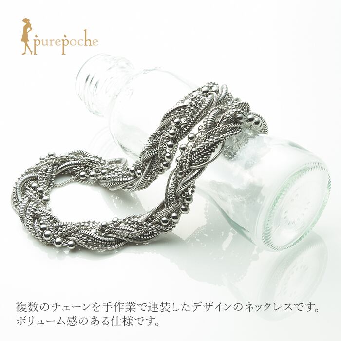 複数のチェーンを手作業で連装したデザインのネックレスです。ボリューム感のある仕様です。流星をイメージして作りました。