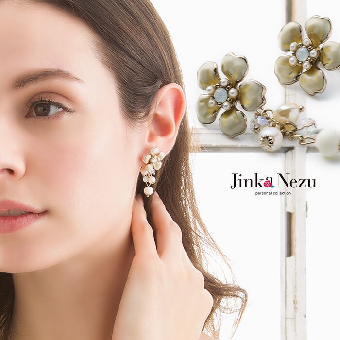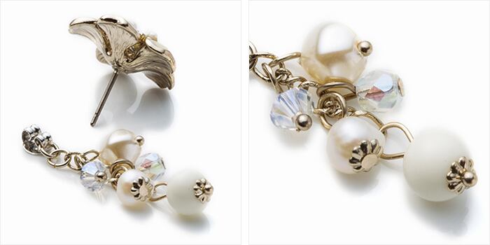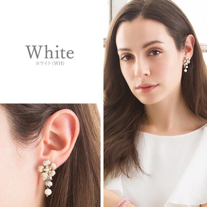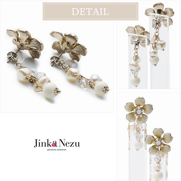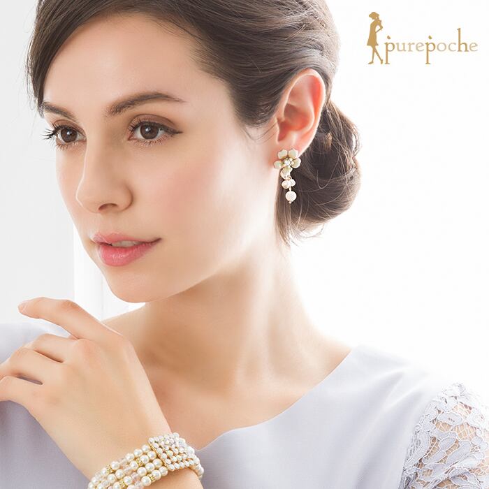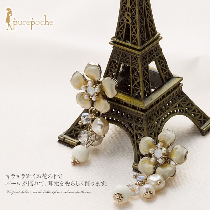 キラキラ輝くお花の下でパールが揺れて、耳元を愛らしく飾ります。チタンポスト&キャッチ式。