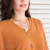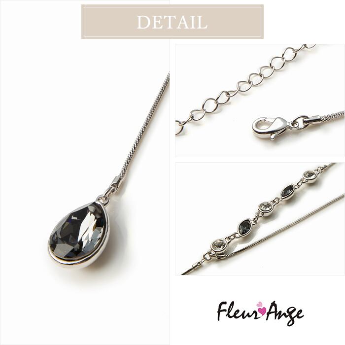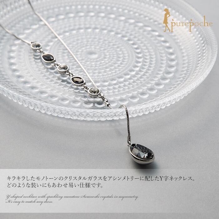 キラキラしたモノトーンのクリスタルガラスをアシンメトリーに配したY字ネックレスです。どのような装いにもあわせ易い仕様です。
