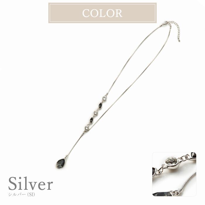 ネックレス ショート クリスタルガラス シルバー925 y字 モノトーン アシンメトリー