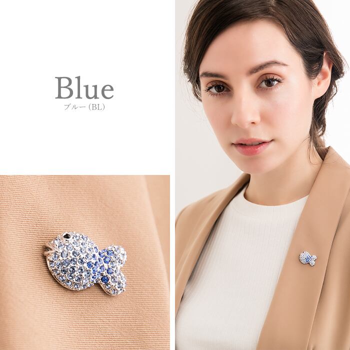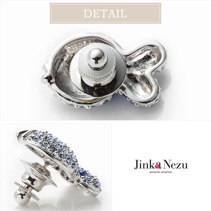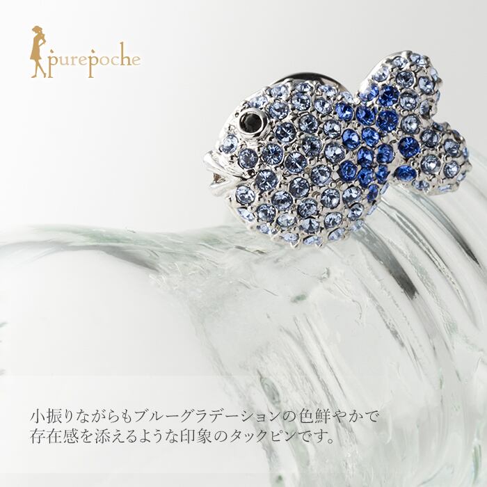 小振りながらもブルーグラデーションの色鮮やかで存在感を添えるような印象のタックピンです。どんな服装にもあわせやすく使いやすいタックピンです。