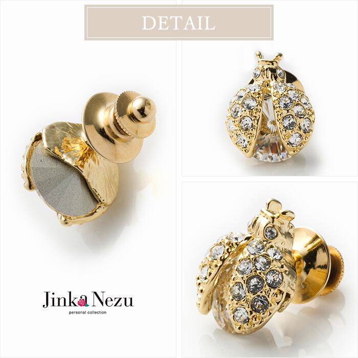 てんとう虫モチーフのきらきら愛らしいピンブローチです。軽くて使いやすい大きさなので、帽子やストールに着けても素敵です。
