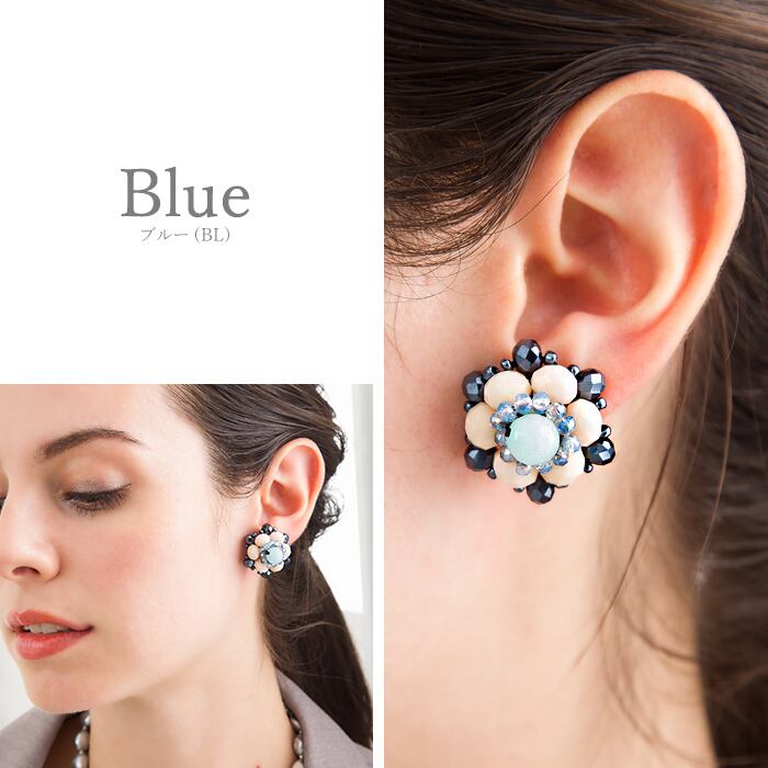 ビーズの輝きが上品なイヤリングです。フラワーモチーフが愛らしく、顔回りを華やかに彩ります。ファッションにコーディネートしやすいタイプです。