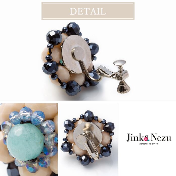 イヤリング クォーツ ガラス ビーズ 多面カット フラワー