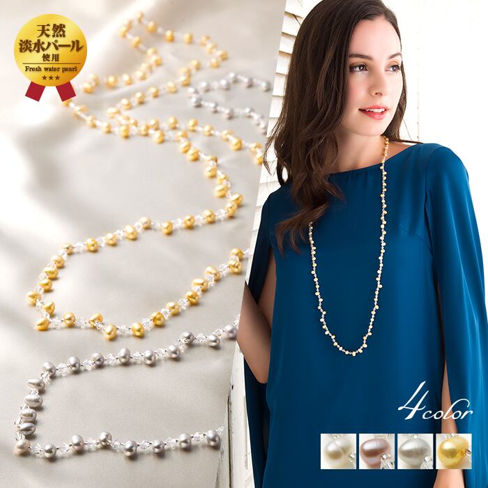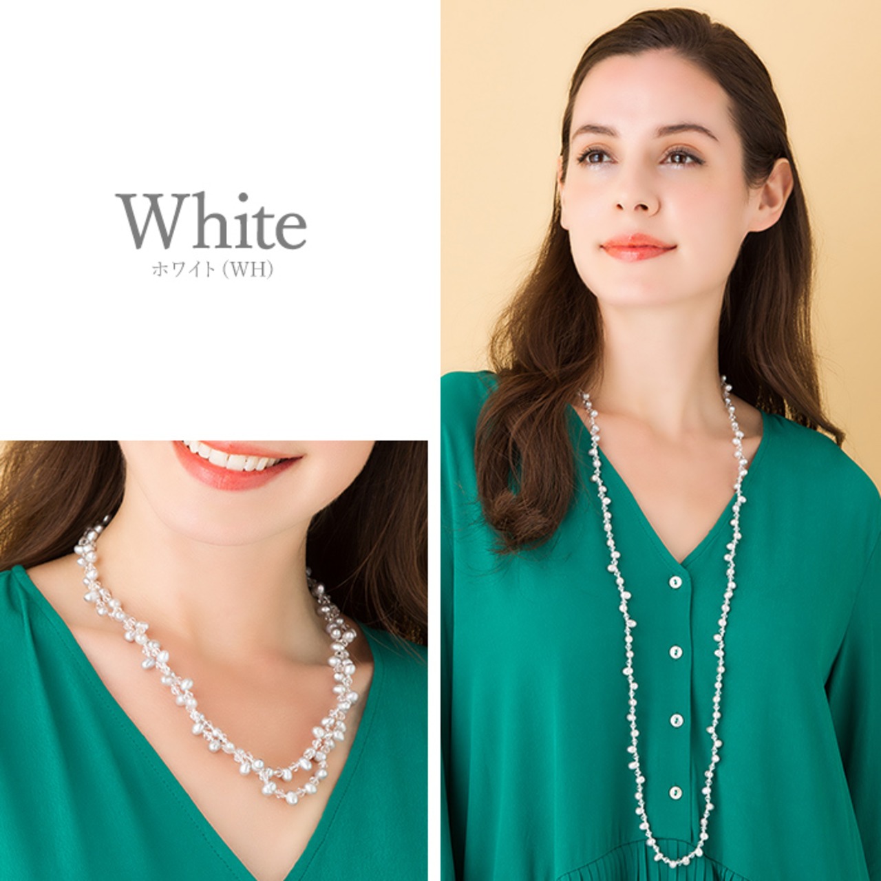 ネックレス ロング 二連 クリッカー ショートナー 淡水パール