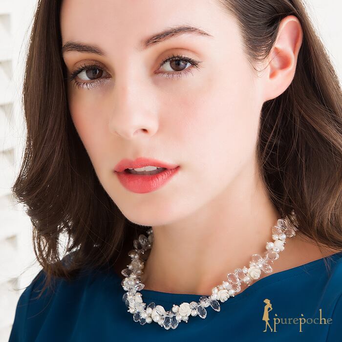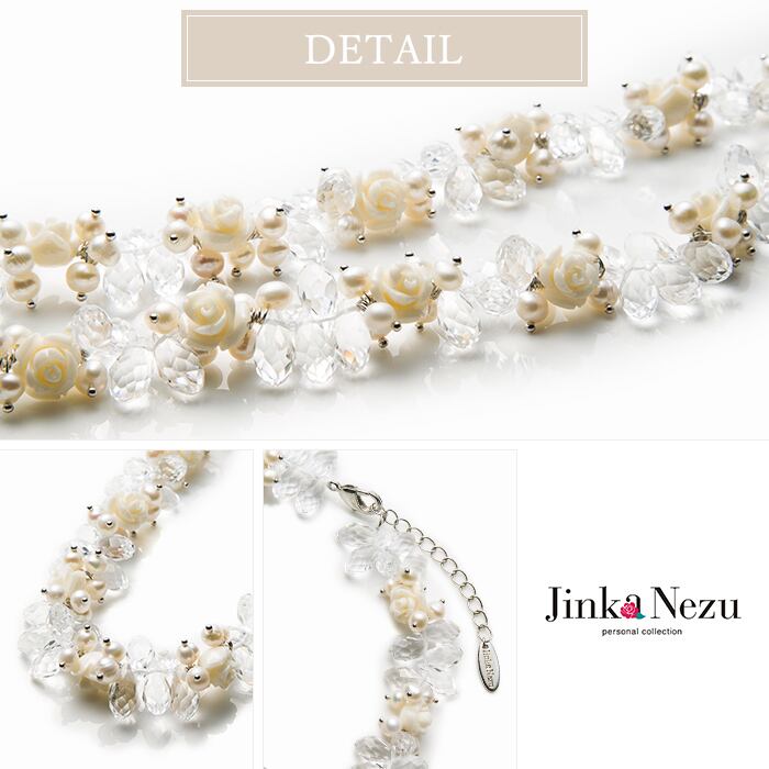ネックレス ショート 淡水パール バロック 多面カット バラ