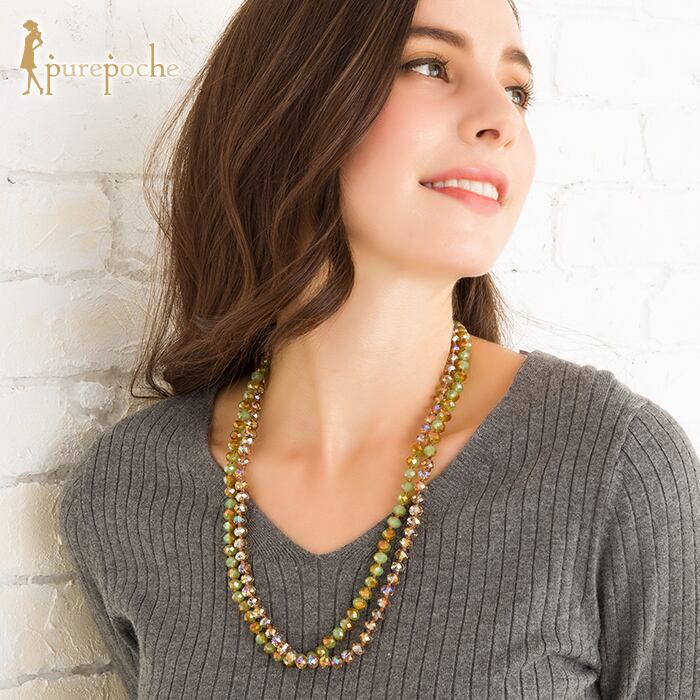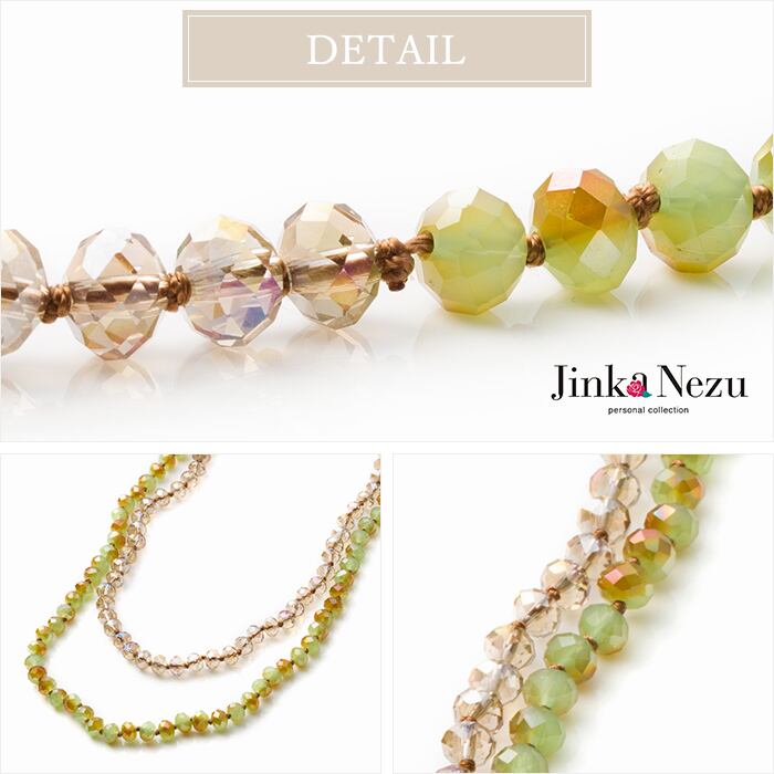ネックレス ロング 二連 ガラス ツインカラー グリーン シャンパン