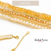 淡水パールとナチュラルストーンとガラスビーズを使ったループブレスレットです。