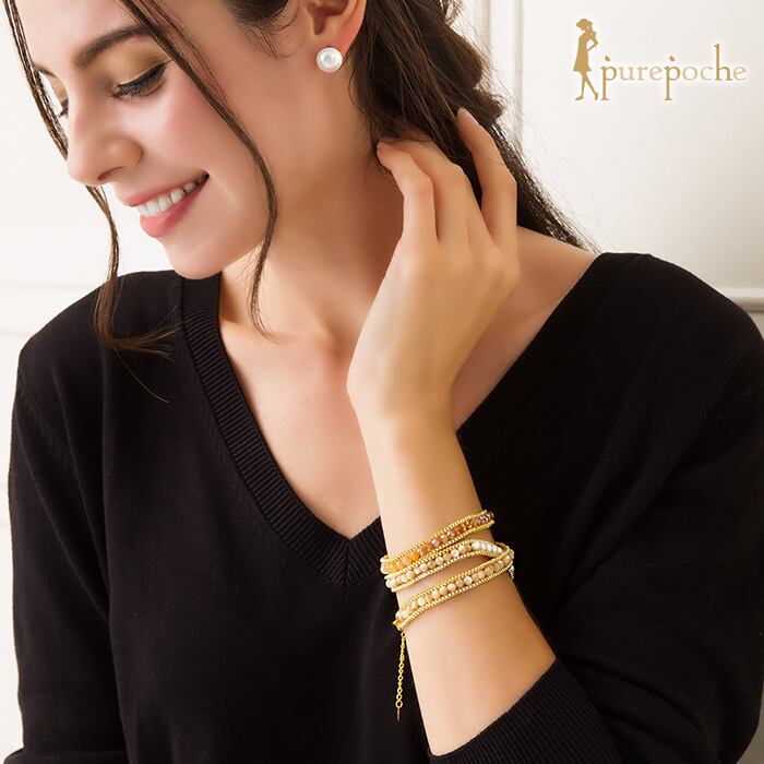 ブレスレット 淡水パール ナチュラル ストーン ガラス ループ