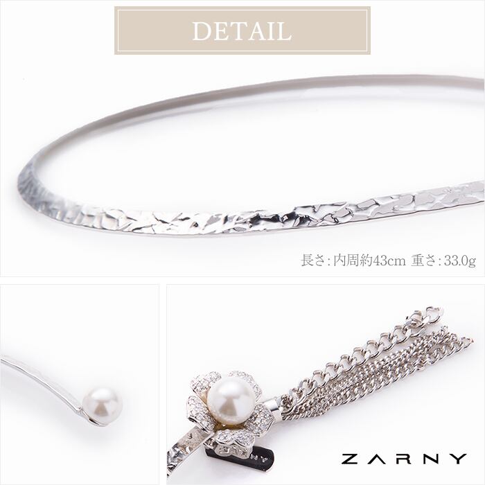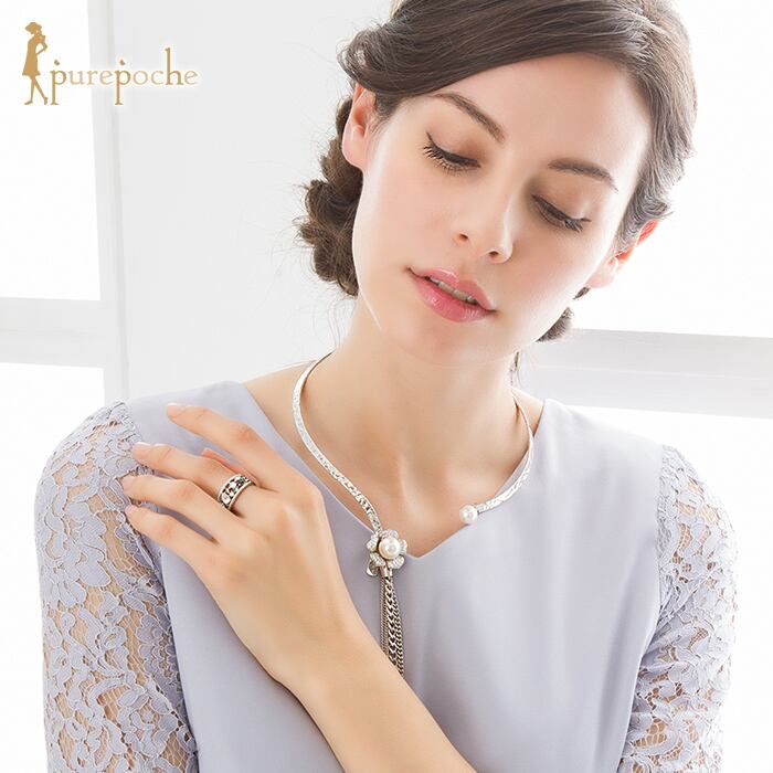 ネックレス チョーカー プラスチックパール キュービックジルコニア フリンジ フラワー