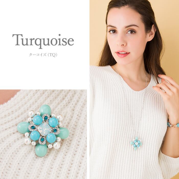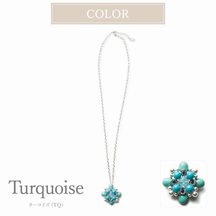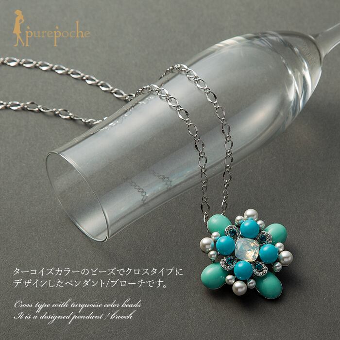 ターコイズカラーのビーズでクロスタイプにデザインしたペンダントです。ペンダントとしてもとしてもお使いいただける使い勝手の良いジュエリーです。