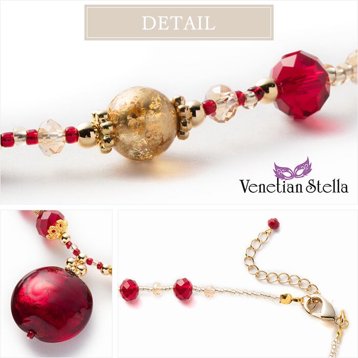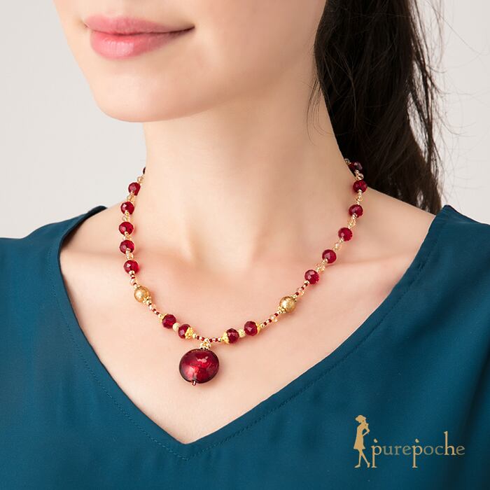 ロッソ(Rosso)カラー、レッドのスキッサ(レンズ形)のヴェネチアンガラスをつかったランクアップしたネックレスです。