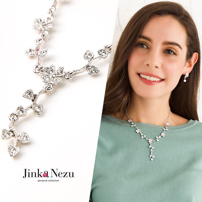 4つ葉のクローバーがモチーフの、可愛らしいフェミニンなネックレスです。Y字ラインのネックレスで胸元を彩ります。