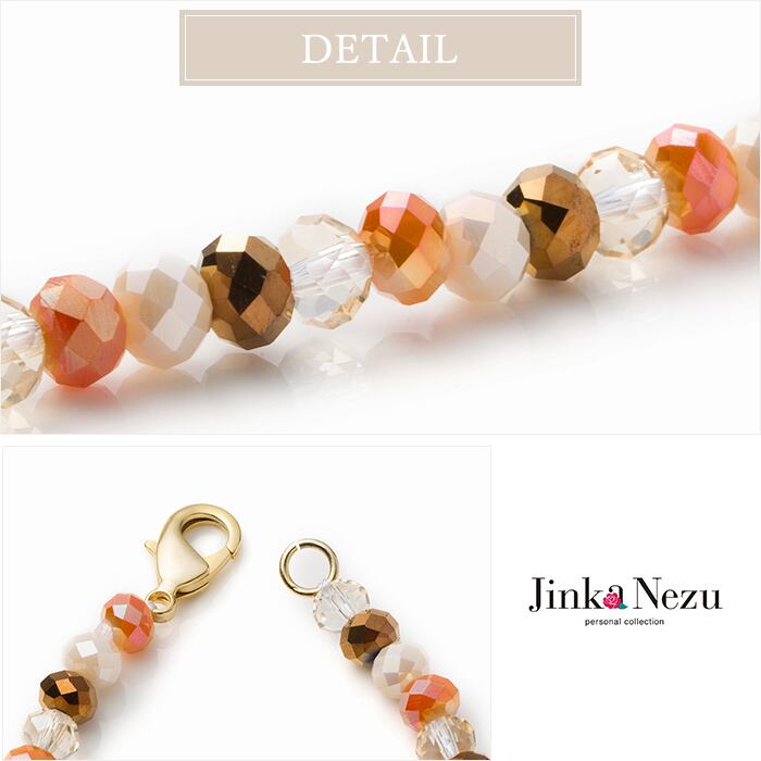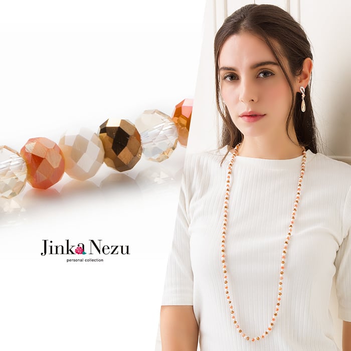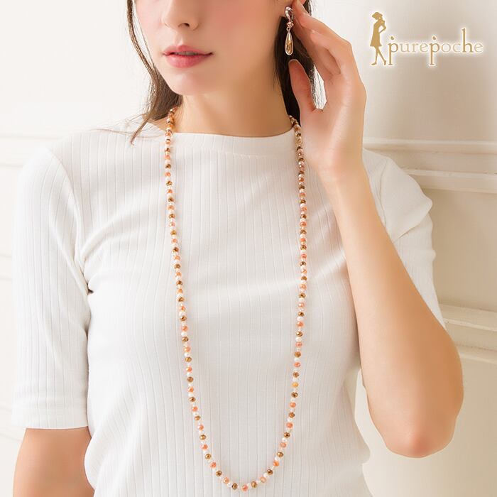 カットビーズのニュアンスのある煌めきと約100cmの長さのネックレスは、様々な装いの楽しさを引き出します。もちろん、デイリー使いにも、ちょっとしたお出かけにも合わせやすいアイテムです。