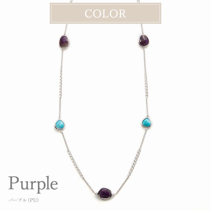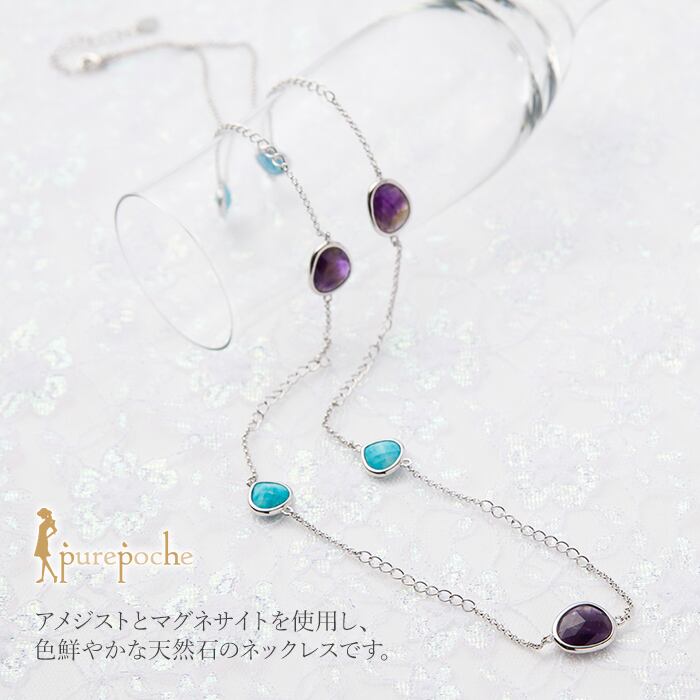 アメジストとマグネサイトを使用し、色鮮やかな天然石のネックレスです。