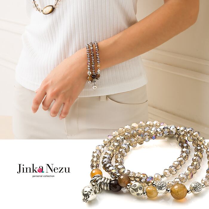 ニュアンスのあるナチュラルカラーのキラキラビーズを3本セットにしたゴージャスなブレスレットです。ファッションとコーディネートしやすいカラーで、手元を華やかに演出します。