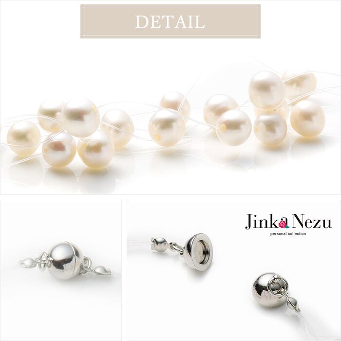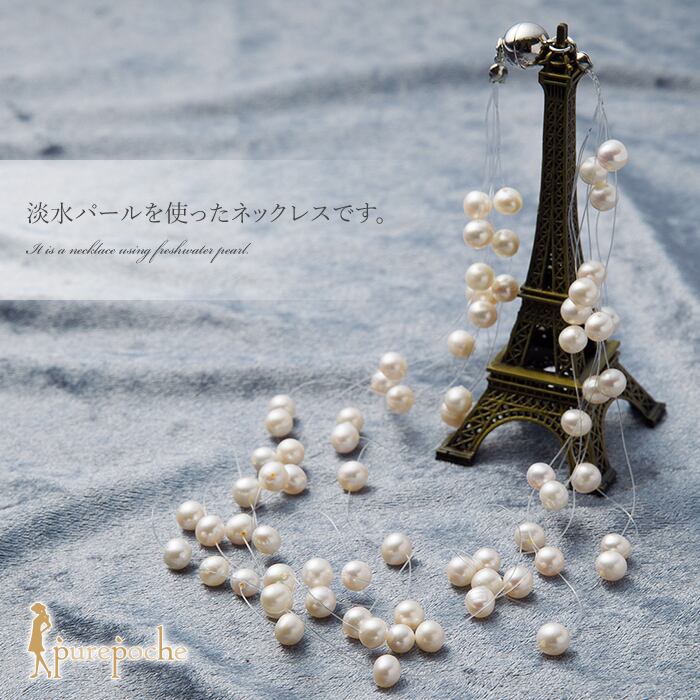 淡水パールを使ったネックレスです。すずしげで軽やかな動きを楽しむことができます。あわせやすく使い勝手の良いタイプです。