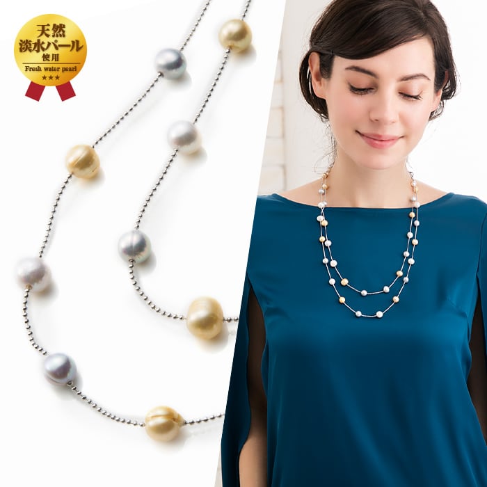 ネックレス ロング 二連 三連 120cm 淡水パール