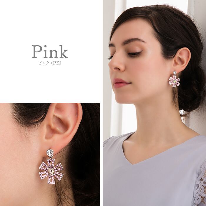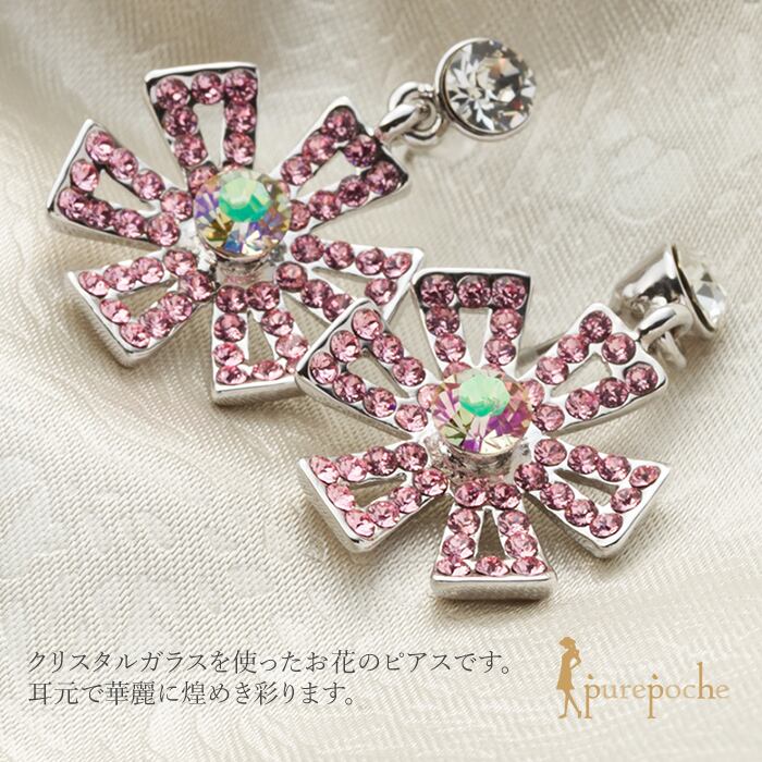 クリスタルガラスを使ったお花のピアスです。耳元で華麗に煌めき彩ります。