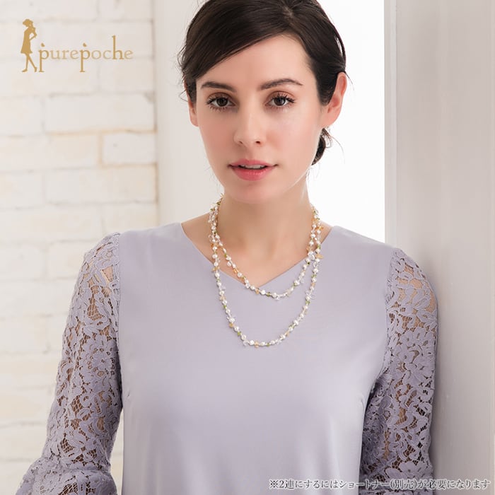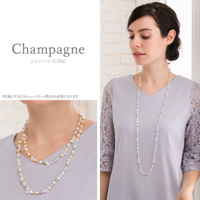 ネックレス ロング 淡水パール シャンパンカラー グリーン