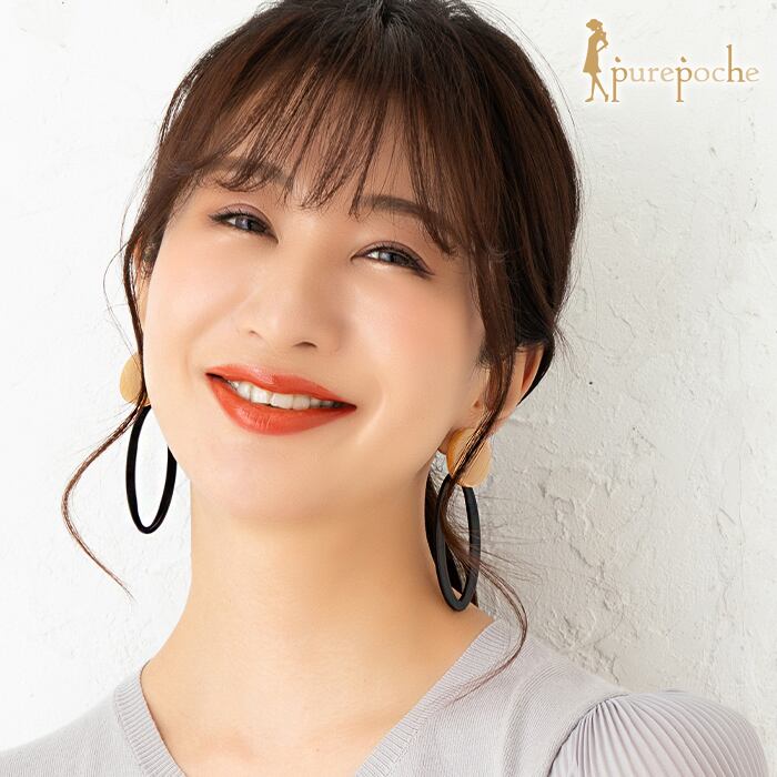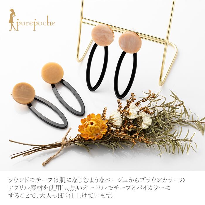 イヤリング ピアス お揃い ブラウン ブラック ベージュ アクリル オーバル ラウンド