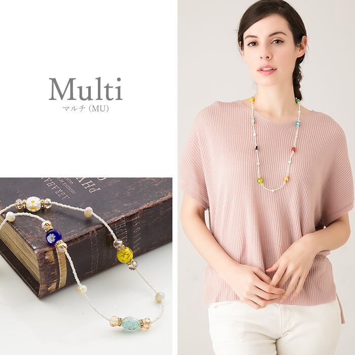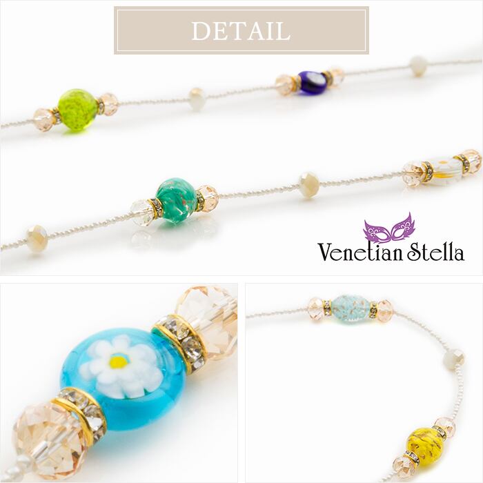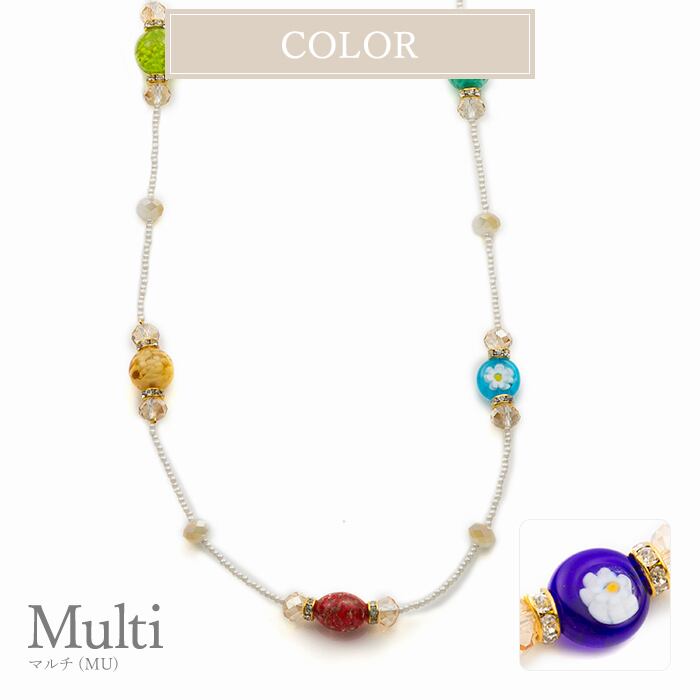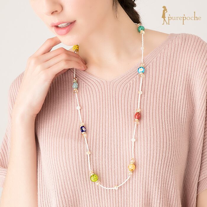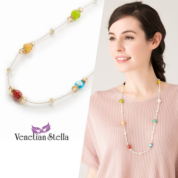 ネックレス ロング ステーション ヴェネチアン ベネチアン グラス ガラス カラフル 多面カット