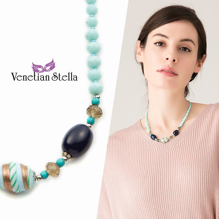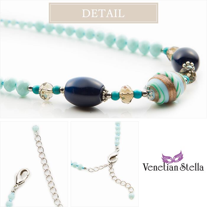 ネックレス ショート ヴェネチアン ベネチアン グラス ガラス スパイラル 螺旋 オリーブ ターコイズ