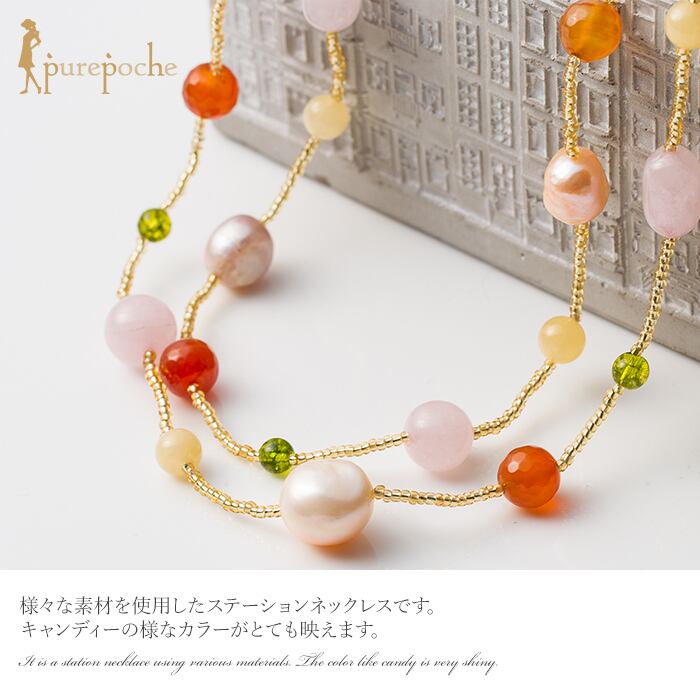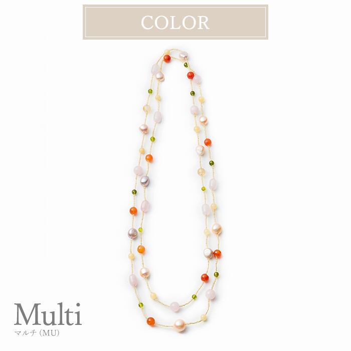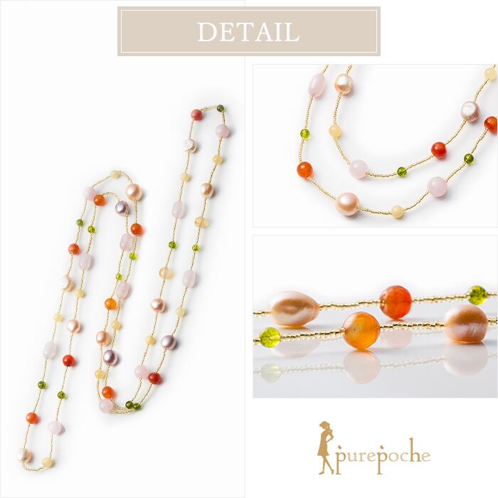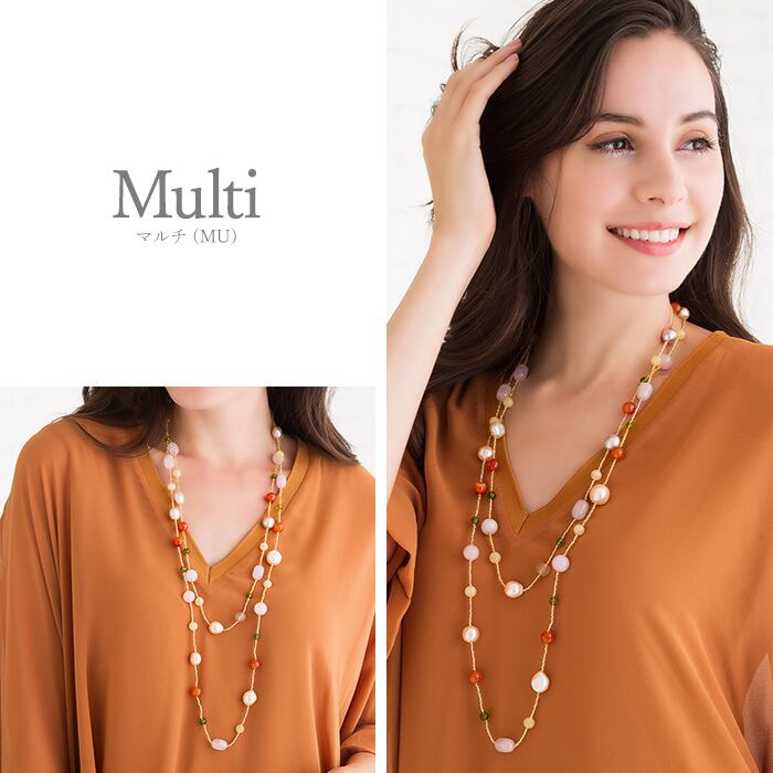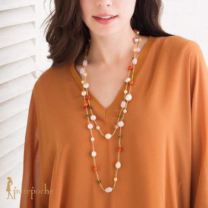 ネックレス ロング 二連 淡水パール めのう ガラス ビーズ