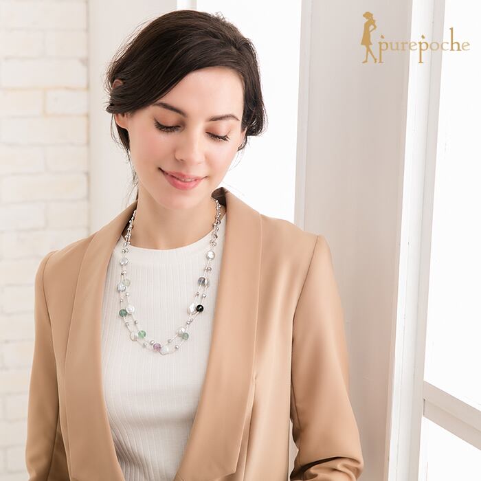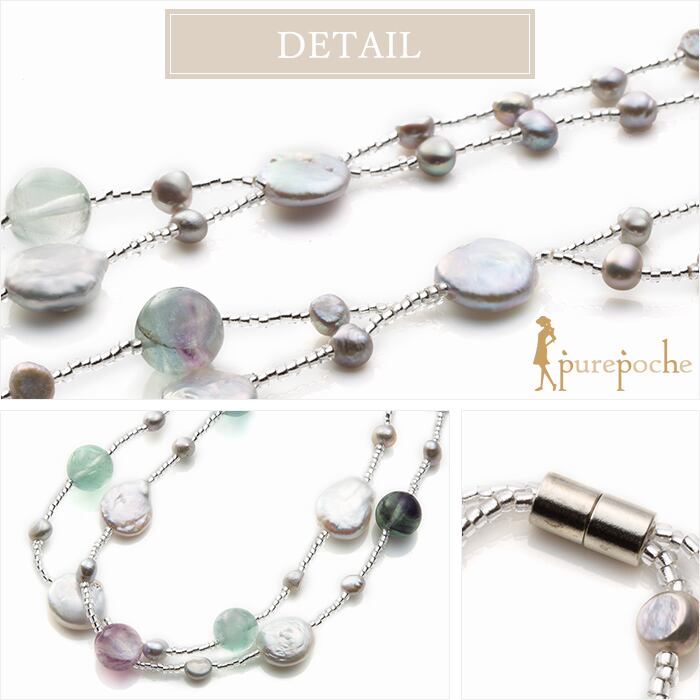 ネックレス ショート 淡水パール フルオライト コイン