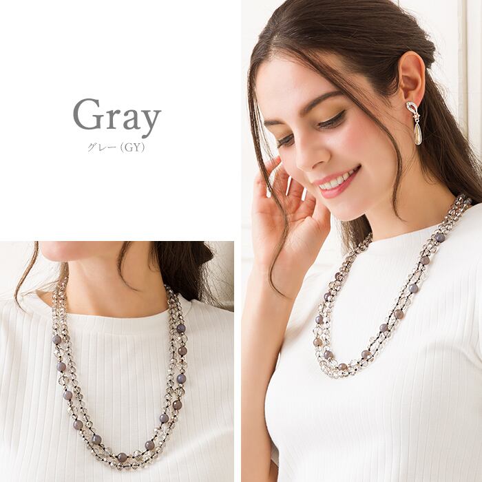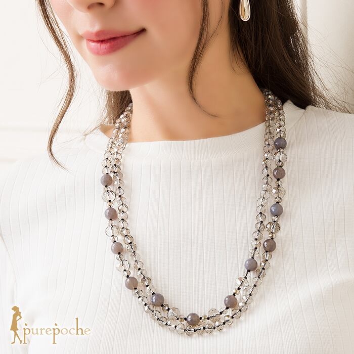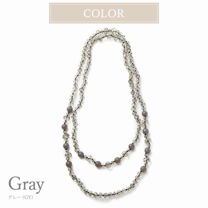 ネックレス ロング 二連 めのう ガラス グレイッシュ