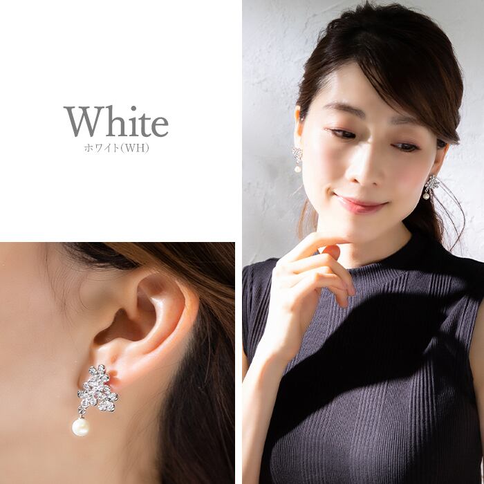 キラキラのカットガラスがフラワーモチーフにセットされ、その下にぶら下がった艶のある淡水パールが上品なピアスです。フラワーモチーフと揺れるパールが愛らしく、顔回りを華やかに彩ります。