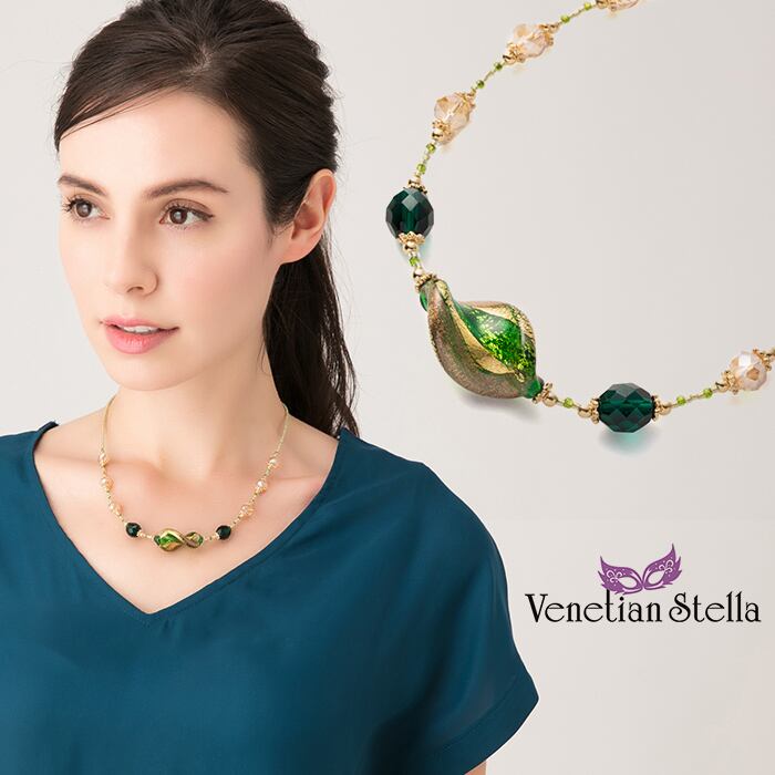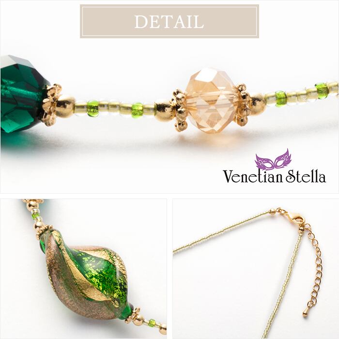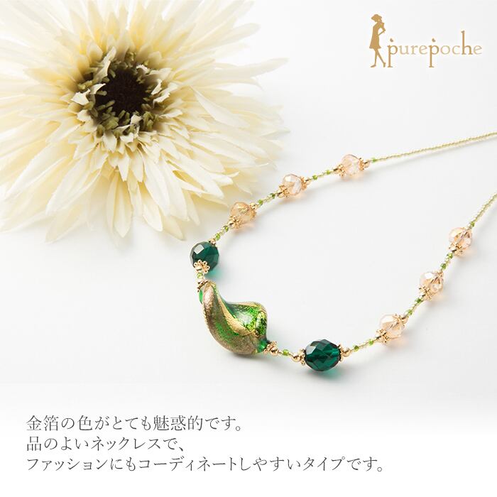 ネックレス ショート ヴェネチアン ベネチアン グラス ガラス 葉 金箔