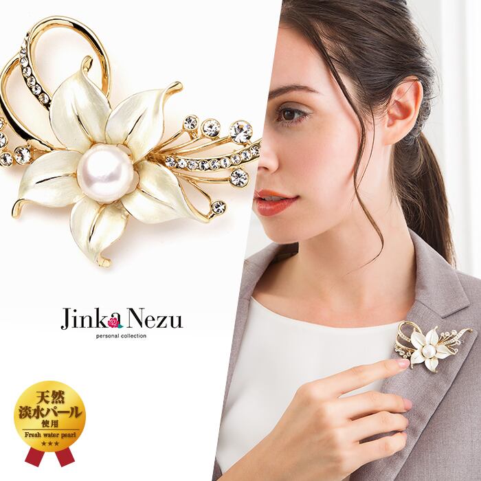 ブローチ 淡水パール ガラス フラワー