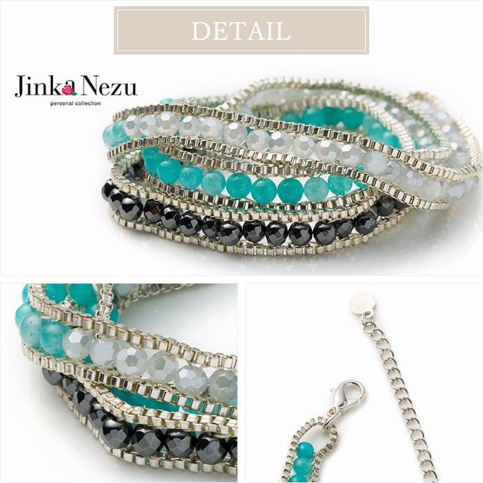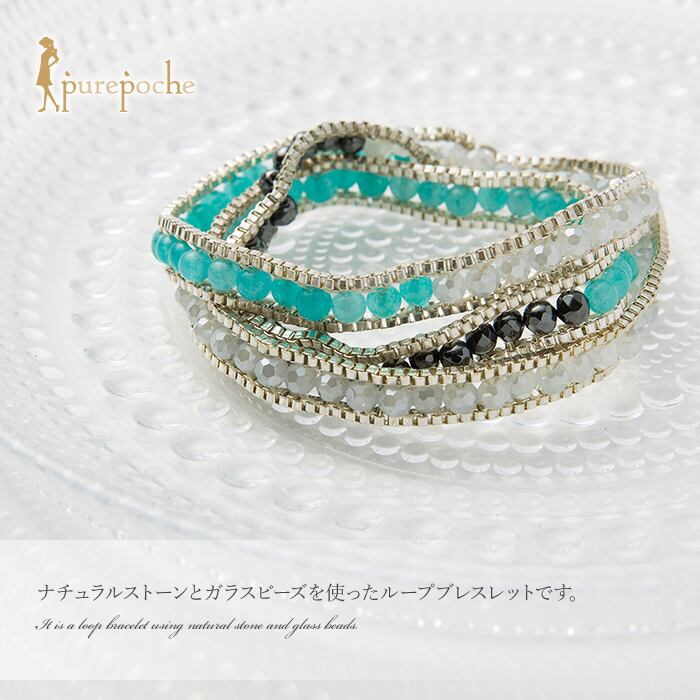 ナチュラルストーンとガラスビーズを使ったループブレスレットです。3〜4連のブレスレットとしてお使いいただけます。