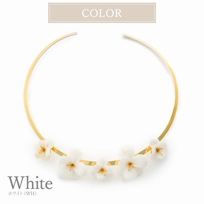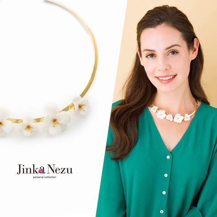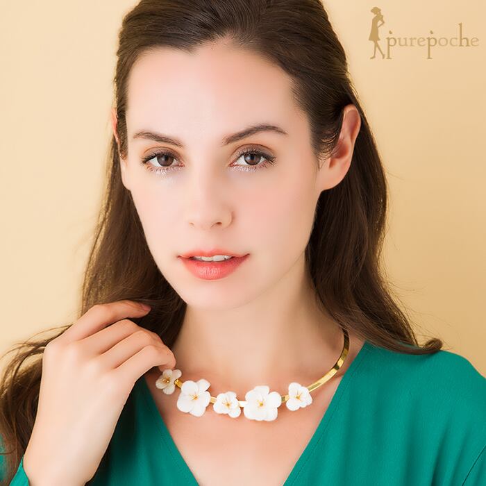 ネックレス ショート レジン 真鍮 花 チョーカー ゴールド