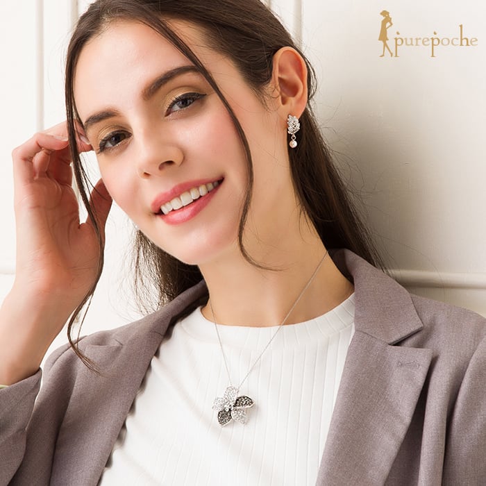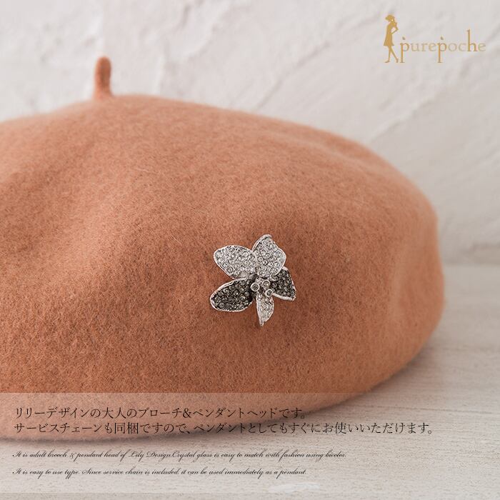 きらきらをちりばめたリリーデザインの大人のペンダントヘッドです。クリスタルガラスをバイカラー使いの商品で、ファッションにあわせやすく、使いやすいタイプです。サービスチェーンも同梱ですので、ペンダントとしてもすぐにお使いいただけます。