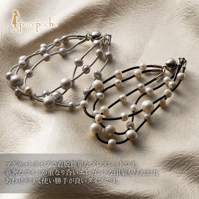 ブレスレット 三連 淡水パール マグネット