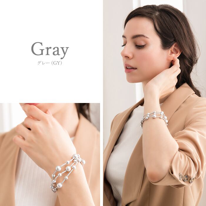 マグネットタイプで着脱簡単なブレスレットです。華奢なラインが重なり合いエレガントな印象を与えます。あわせやすく使い勝手が良いタイプです。