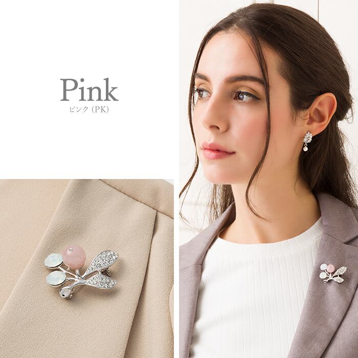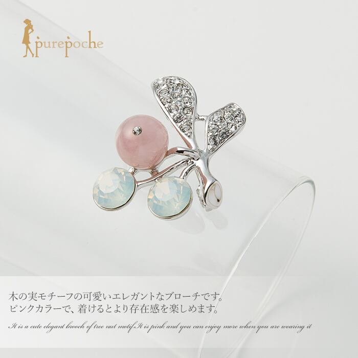 木の実モチーフの可愛いエレガントなブローチです。ピンクカラーで、着けるとより存在感を楽しめます。