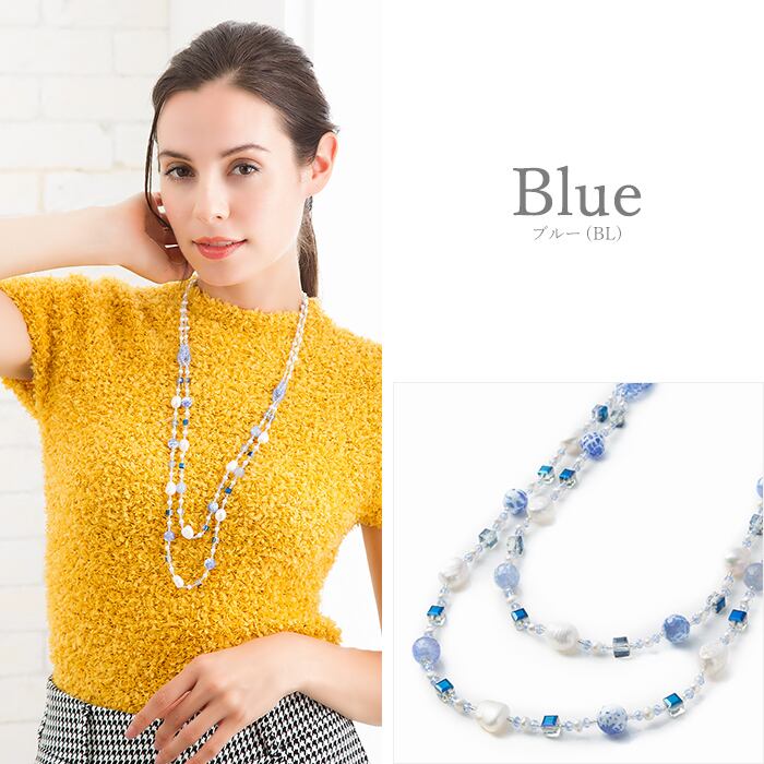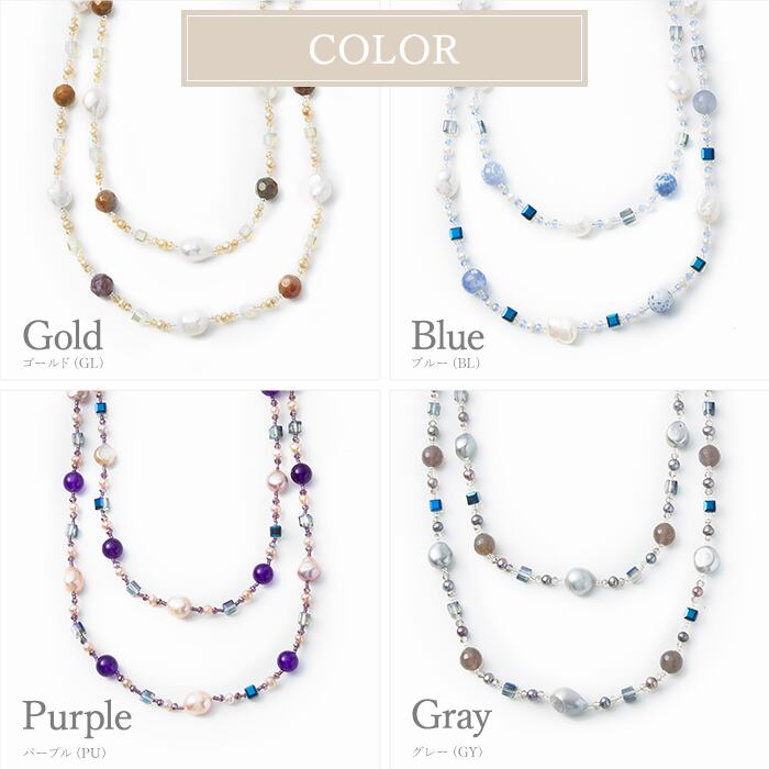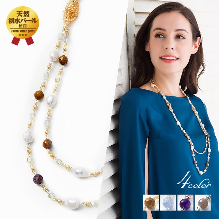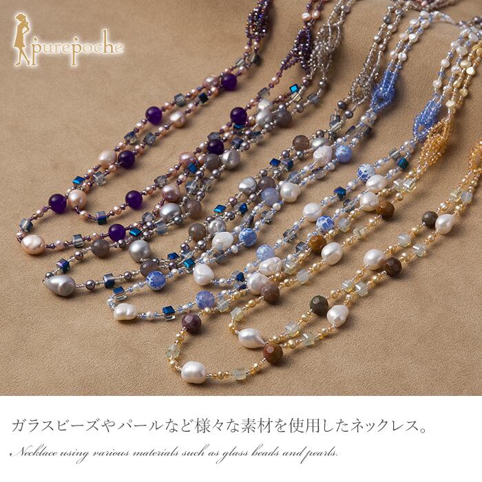 ネックレス ロング 淡水パール メノウガラス 重ね付け