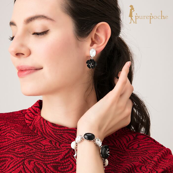 レジン(約17mm) カービング(お花) ガラス(約9.8×13.8mm) オーバル イヤリング金具 ミックスタイプ