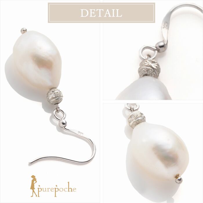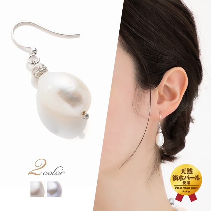 大粒のバロック型の淡水パールを使用したピアスです。 大粒のパールで耳元が華やかになります。ピアスフックはSV925を使用しているためアレルギーの方も安心してつけられます。