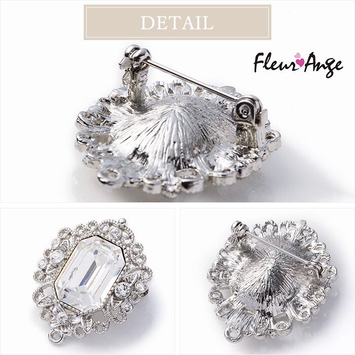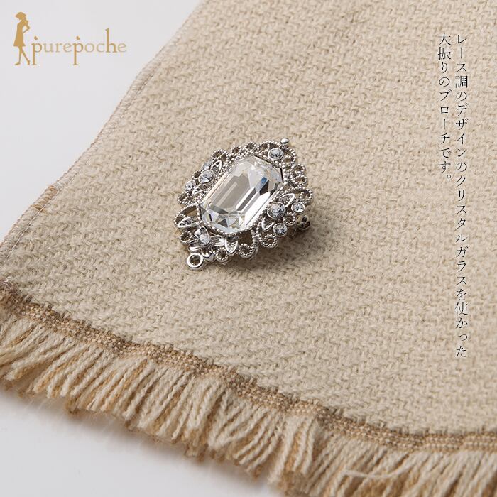 ブローチ クリスタルガラス パール レース調 大ぶり
