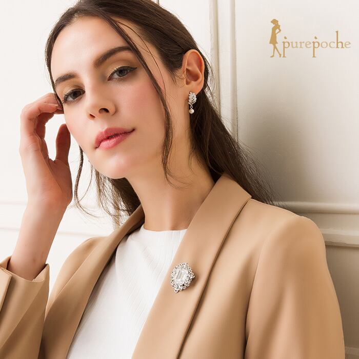 Charmart(フランス語で「チャーミングな、素敵な」の意)なレース調のデザインのクリスタルガラスを使かった大振りのブローチです。クリスタルガラスパールの揺れ感も素敵です。