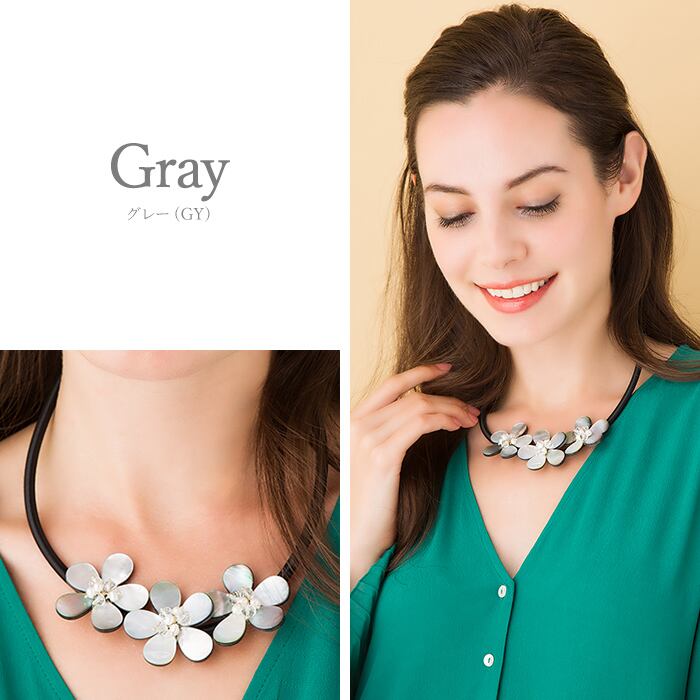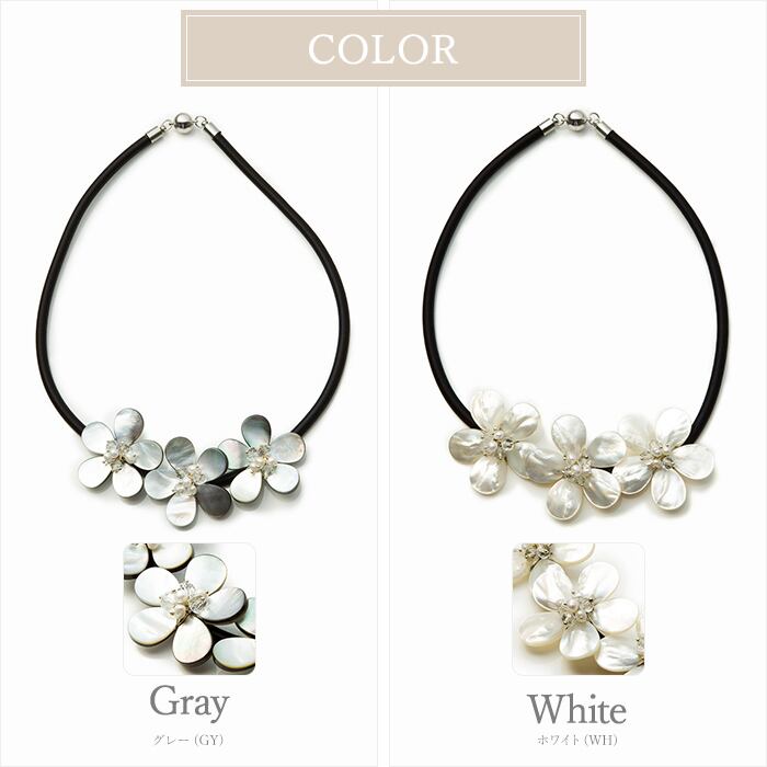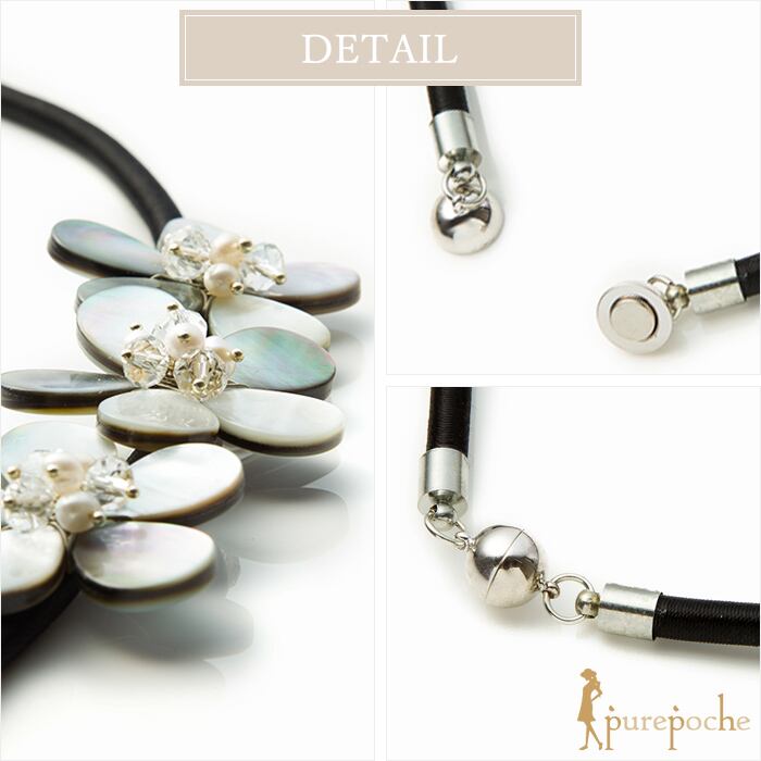 ネックレス ショート 淡水パール チョーカー ガラス シェル 花 マグネット