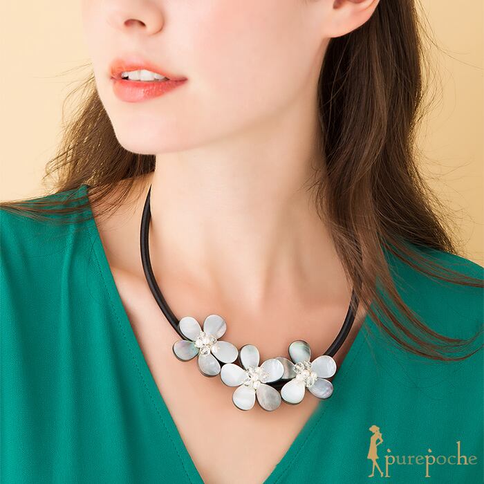お花が3つ連なっているチョーカーネックレスです。マグネット式になっております。